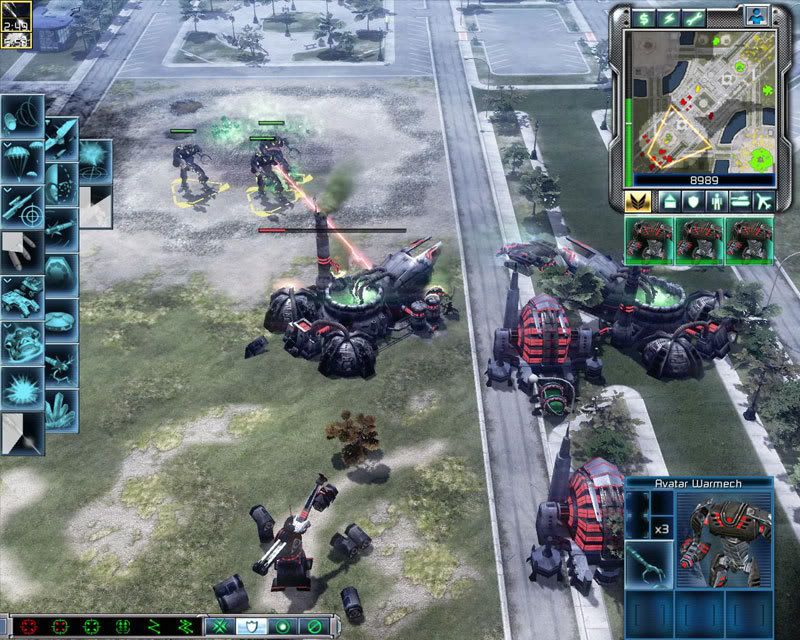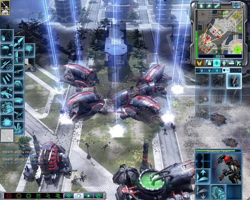 Specific units also have activated special abilities. Generals had them en masse, in the style of a Blizzard game, but in the past, C&C games have only featured the generic "expand" and "pack up" commands for most specialized unit abilities. These abilities don't compromise the feeling of the game, and provide some interesting unit synergies, particularly with Nod's units.