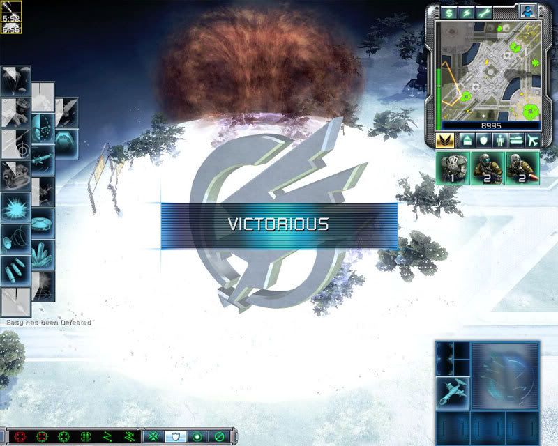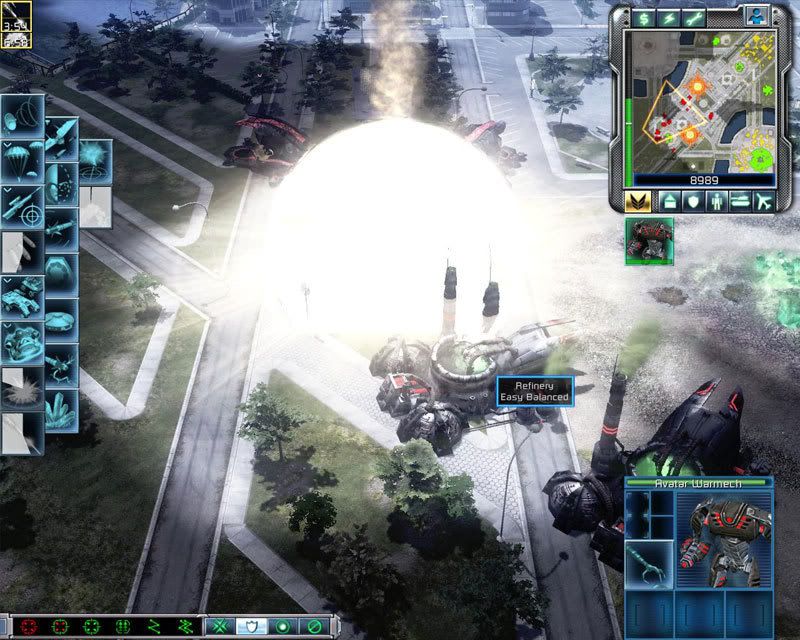 I noticed one major AI quirk while I was taking the screenshots for this article; when I performed a traditional engineer rush to steal the enemy's MCV (so I could check out the NOD tech and units), the AI compensated by constructing about five new MCVs, which were alternately set up and milled about through their base. I did decide to take screenshots on easy for a reason, however: medium difficulty handily kicked my ass. Plus, if I had played medium, I wouldn't have been able to finish the round with this: